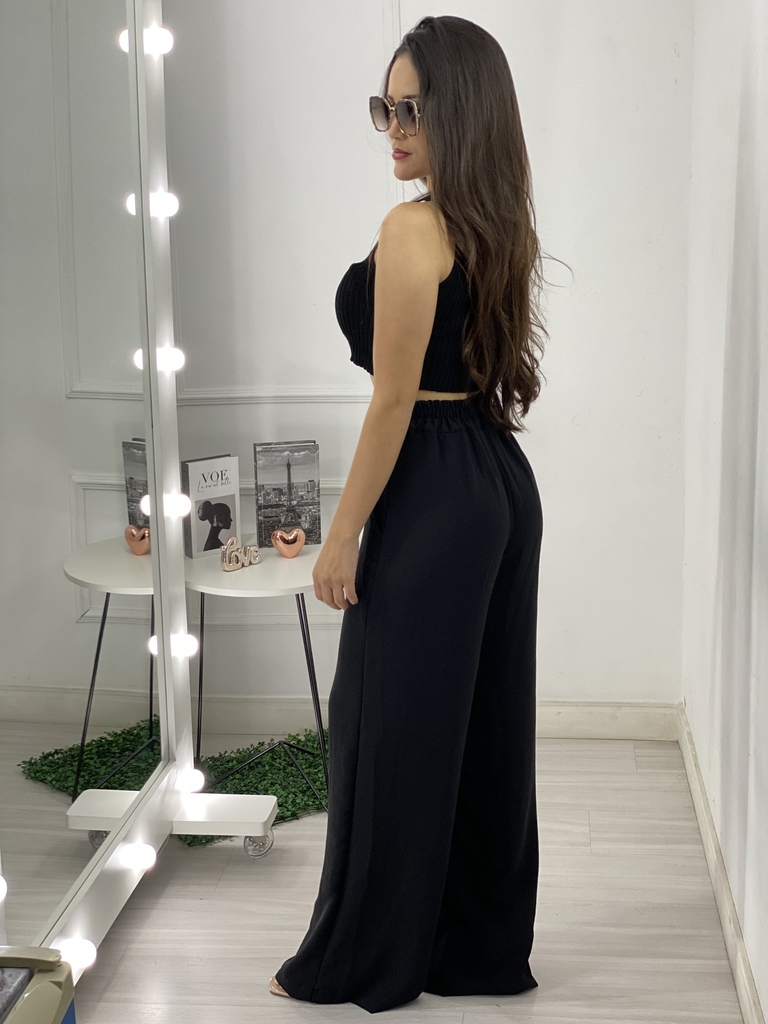 Aquela peça básica diferenciada para usar de segunda a segunda. No comprimento longo, malha crepe de duna, detalhe em pregas na parte frontal, possui elástico na cintura trazendo um conforto a mais para peça e seu fechamento é por botão e zíper. A calça também possui dois bolsos frontais e sua modelagem é no estilo pantalona, das pernas bem largas.